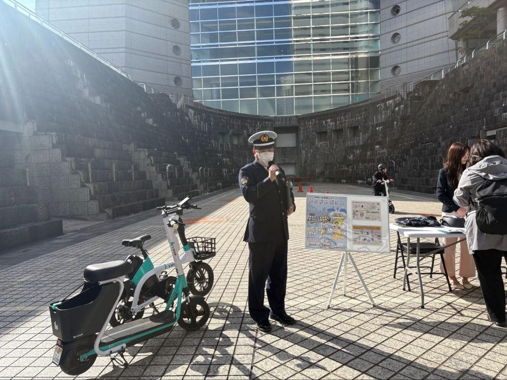 サービス開始初日には、神奈川県警戸部警察署と東京海上グループと連携し、横浜ランドマークタワー敷地内のドックヤードガーデン(所在地:神奈川県横浜市西区みなとみらい2丁目2-1)にて、一般の皆様を対象とした電動シートボードと電動キックボード、電動アシスト自転車の安全講習会を開催しました。