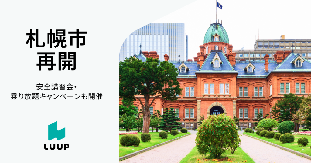 株式会社Luup(本社:東京都品川区、代表取締役CEO:岡井大輝、以下「Luup」)は、2026年4月15日(水)10時より、北海道札幌市にて「LUUP(ループ)」の提供を再開します。同日には、北海道警察および東京海上ホールディングス株式会社(本社:東京都千代田区、取締役社長グループCEO:小池昌洋)・東京海上日動火災保険株式会社(本社:東京都千代田区、取締役社長:城田宏明)と連携し、赤れんが庁舎 ガーデン(所在地:札幌市中央区北3条⻄6丁⽬1番地)にて、安全講習会を実施します。さらに、「LUUP」のライド料金が全員15分間何度でも無料になる「乗り放題キャンペーン」を、4月22日(水)まで開催します。