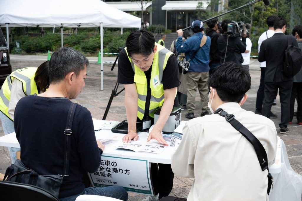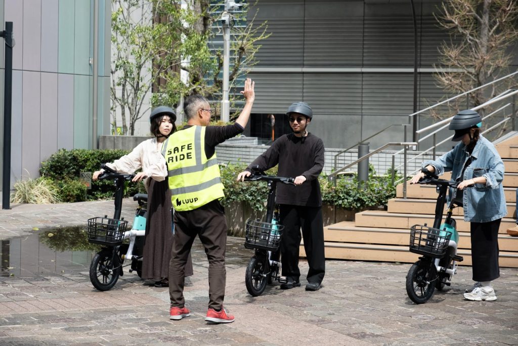 LUUPの電動アシスト自転車を安全にご利用いただくため、渋谷エリアでスタッフが模範走行を実演しました。
